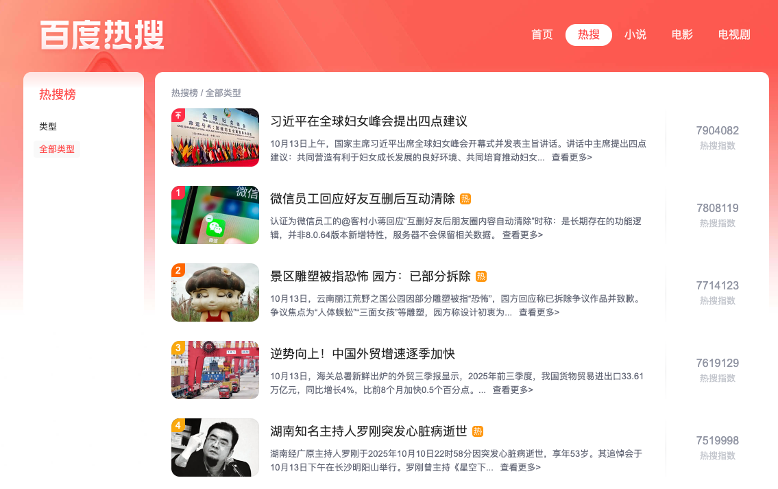 I don't need to tell you that news services and user habits are different from ours. You can identify the most trending topics on the Baidu Trends page: