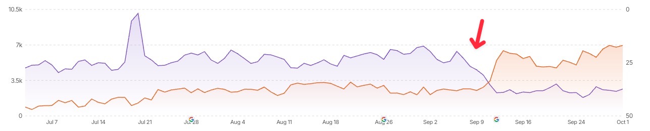 While this change may seem like a technical detail at first glance, SEO specialists noticed sudden data fluctuations in their dashboards: impression counts in Google Search Console data dropped dramatically, while average ranking positions unexpectedly improved. An analysis shows that 87.7% of sites saw a decrease in total impressions, and 77.6% saw a decrease in the number of unique keywords.