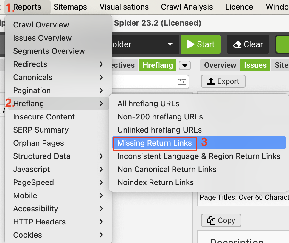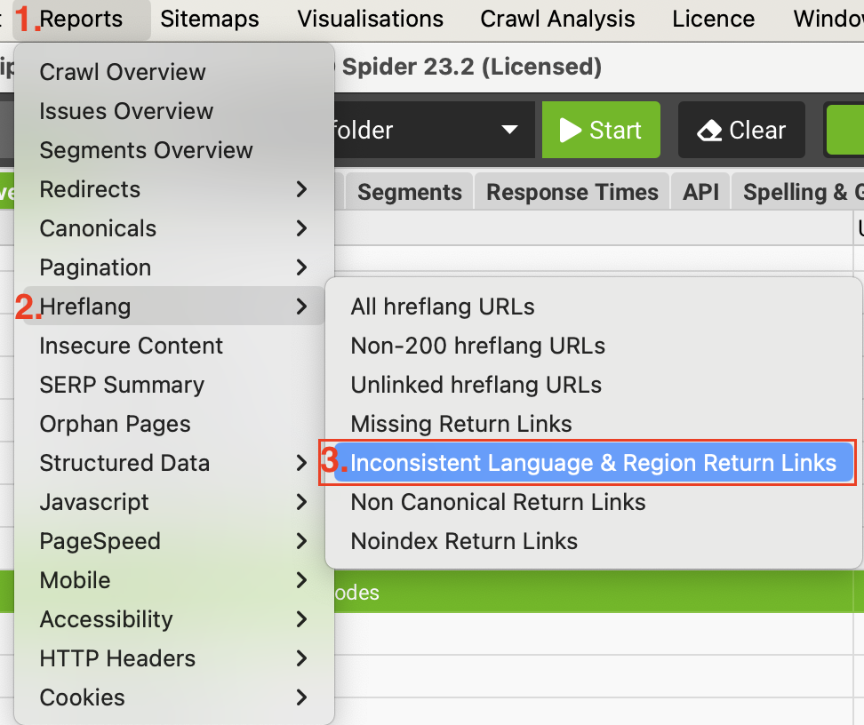 Teknik SEO analizlerimizde return tag (geri dönüş etiketi) kontrollerini Screaming Frog’un “Missing Return Links” raporu kullanılarak gerçekleştirebiliriz.