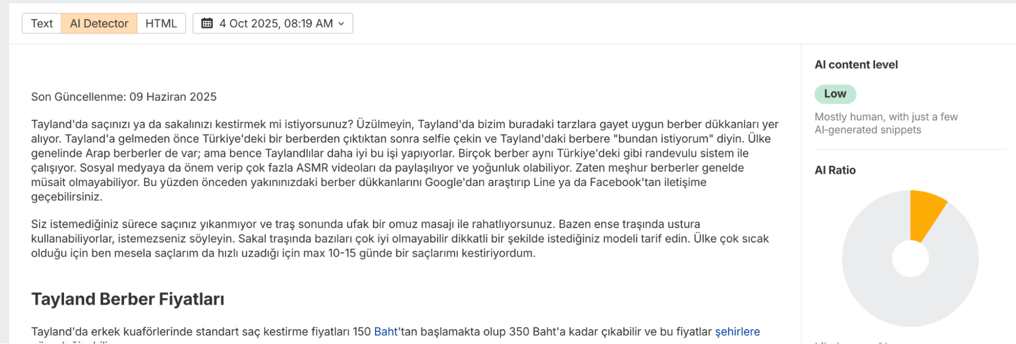 Özellikle toplu bir şekilde üretilen ve kontrol edilmeyen AI içeriklerinde keyword stuffing ve istenilen anahtar kelimelerin o makalede kullanılmaması gibi sorunlar görülebilir. Bununla beraber bu yazımda olduğu gibi alakalı sayfalara doğru internal link bağlantılarını yapmak ve gerekliyse external kaynaklara bağlantı kurma noktasında istediğimiz sonucu henüz almayabiliriz.