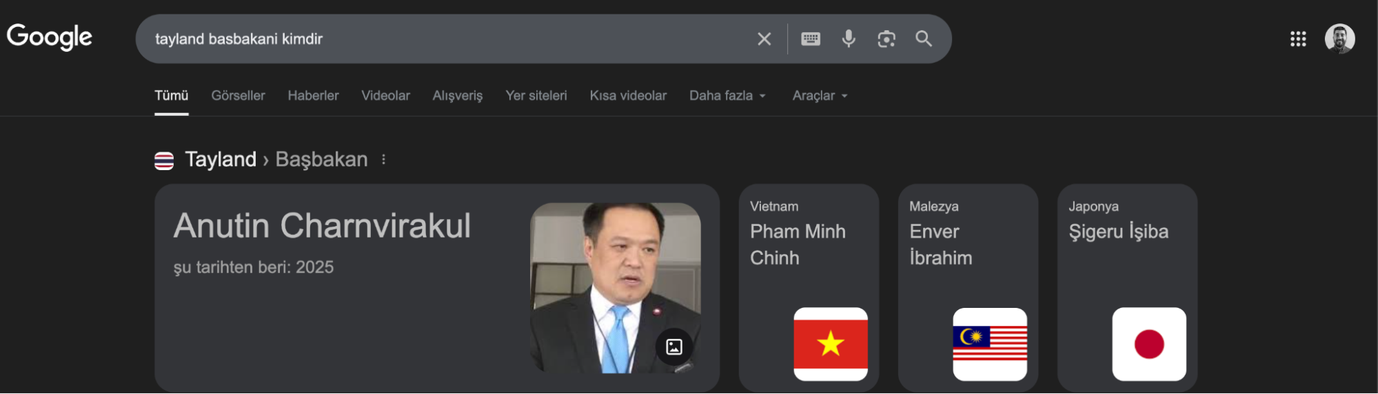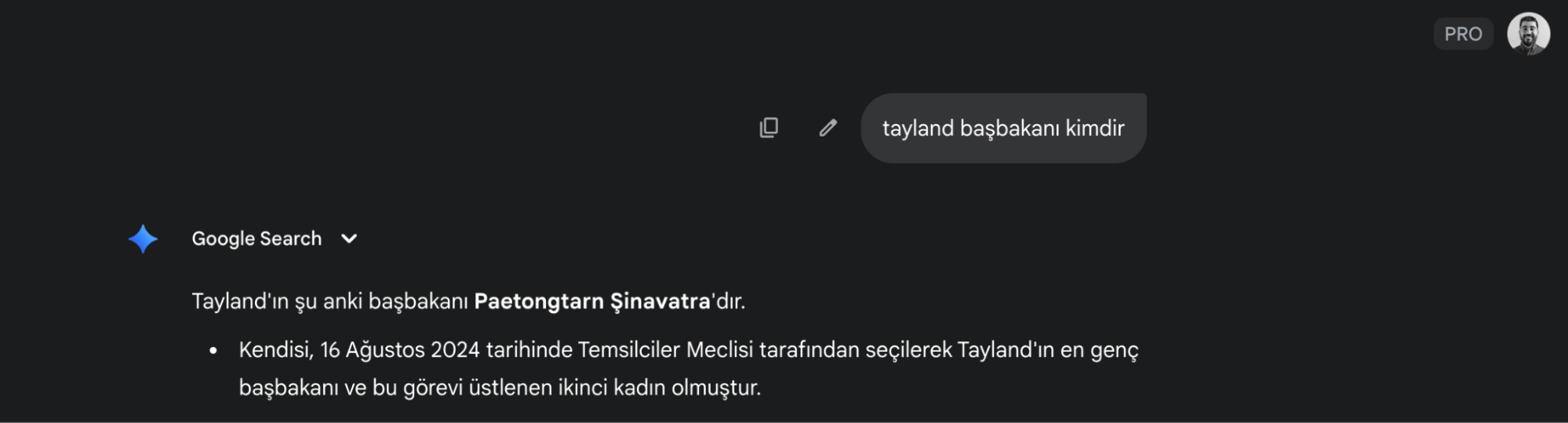 GPT-5 güncellemesiyle ChatGPT'nin artık çok daha az hata yapıyor. Bu yazıyı sadece 1 yıl öncesinde yazsaydım çok daha fazla hatalı bilgi verdiğini söyleyebilirdim; ama şu an bu oran oldukça düşük. Yaklaşık %4.8’lik bir hata payı yapılan araştırmalarda ortaya çıkıyor. Bu oran her ne kadar düşük görünsede özellikle önemli projelerde site genelinde de hataların sayısı fazlalaştığında yanlış bilgiler yüzünden sıralamalar zarar görebilir ve tekrar sıralamaları geri kazanmak zor olabilir. Örnek bir sorgu ve güncel olmayan cevap: