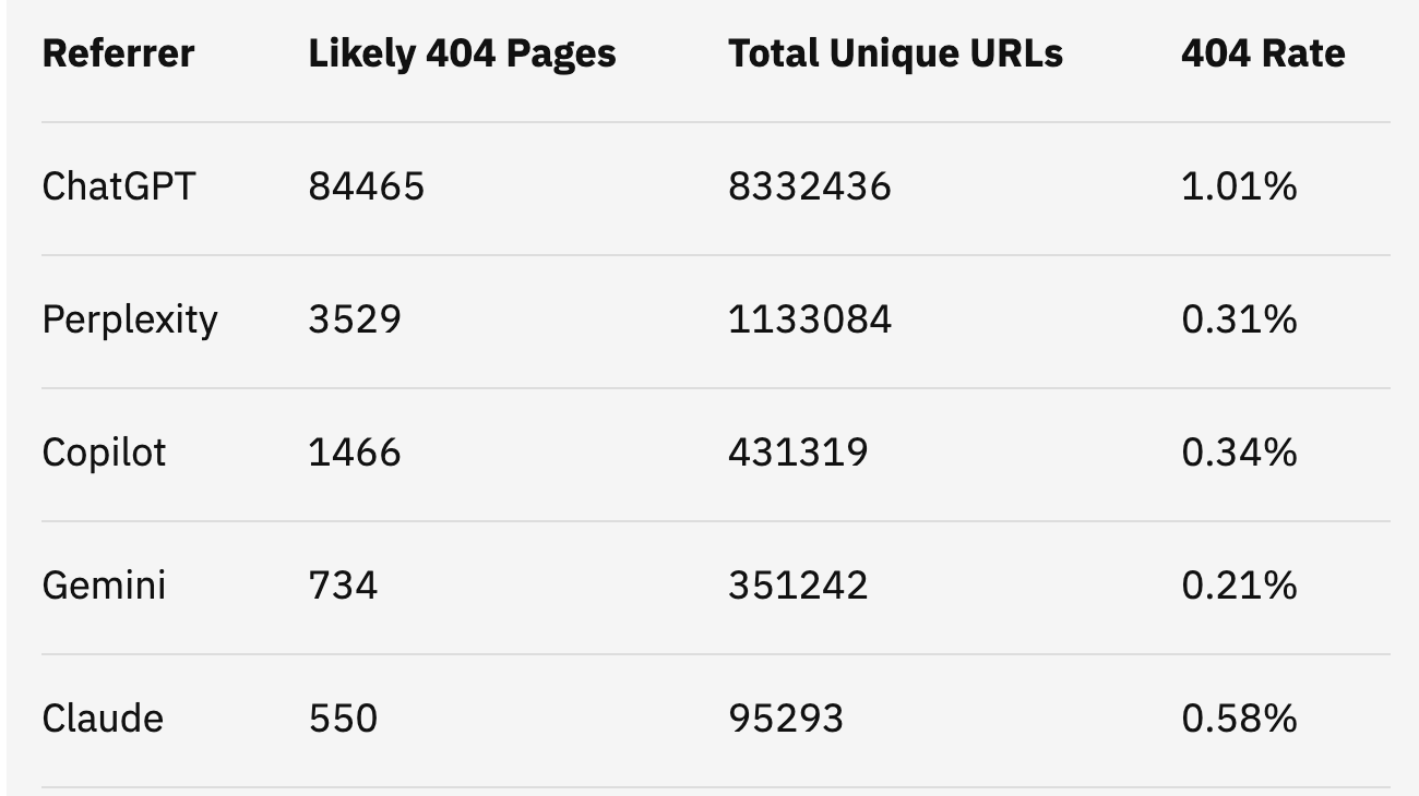 Bu yüzden AI bu tür basit SEO uygulamalarında zorlanabilir. Her zaman içerikleri kontrol etmeli ve link ekleniyorsa bile 404'e düşmeyen linklerin burada yer aldığından emin olmalıyız. Ahrefs’in yaptığı bir araştırma zaten halüsinasyon URL’lerin olduğunu gösteriyor: